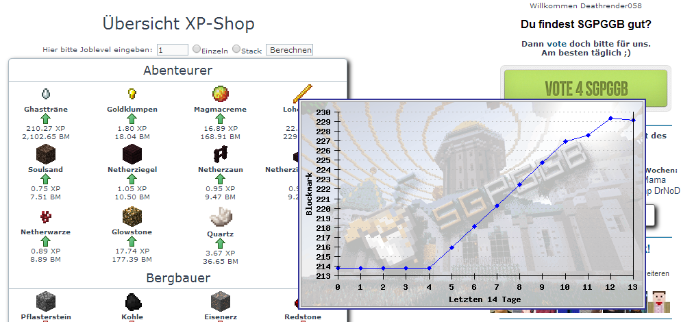 Ab sofort könnt Ihr den Beruf für 500 Votepunkte (statt 1.000 Votepunkte) wechseln per /xps changejob.