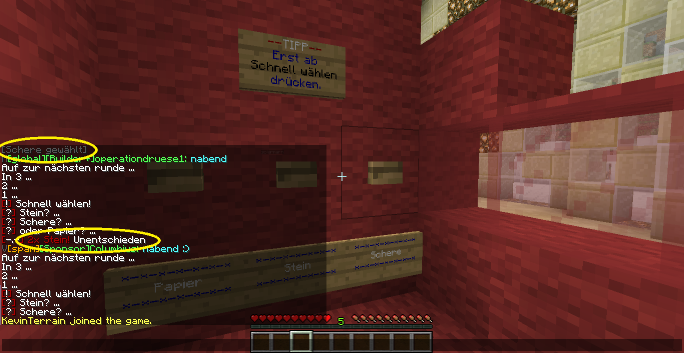 Wie man an den Bildern unschwer erkennen kann, wählt ihr Stein, Schere oder Papier bevor die Runde beginnt.