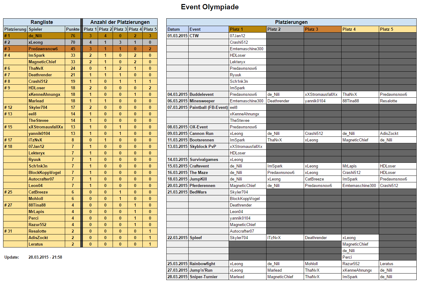 Und schlussendlich der Gewinner der Event-Olympiade, mit ganzen 76 Punkten, de_Nili!