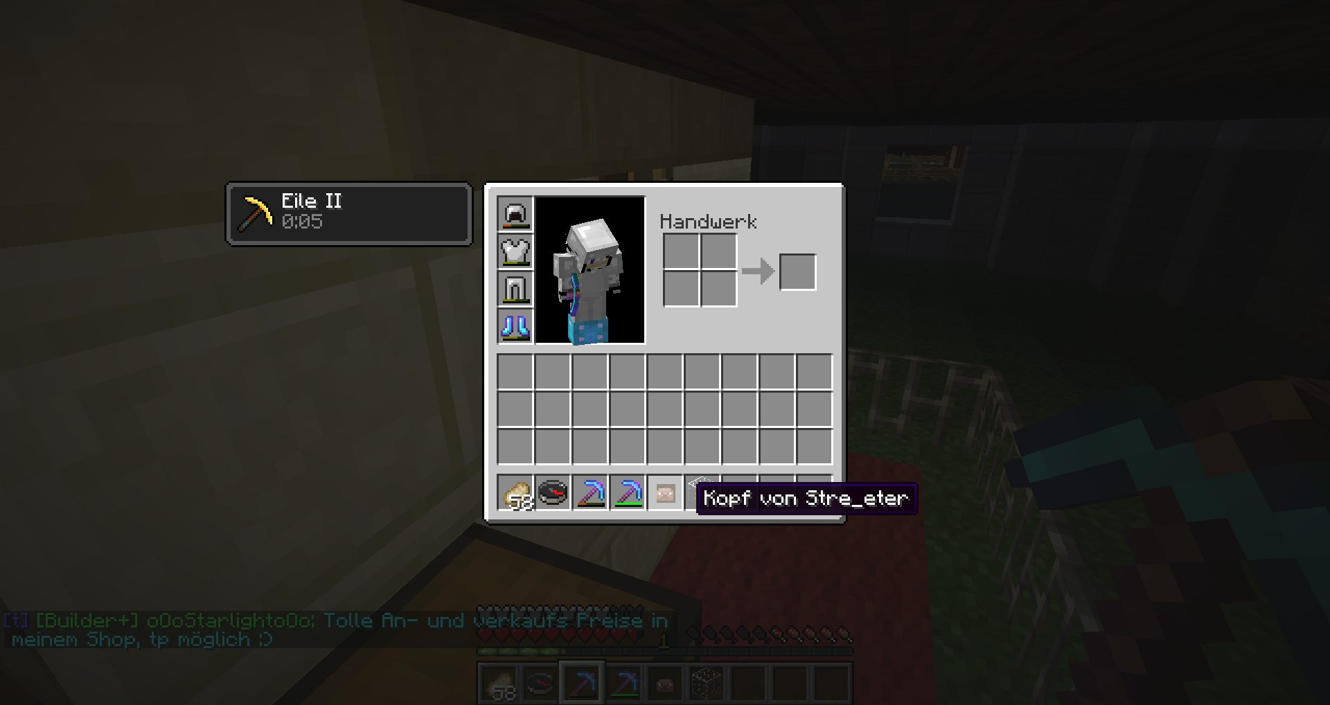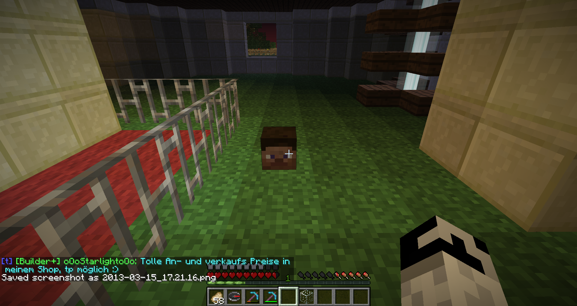 Heute hab ich mich erstmal erschrocken, als ich sah, dass der Kopf von Stre_eter aussah wie Steve. Dann beim abbauen stellte ich fest, dass der Kopf noch so bennant ist, aber eben als Steve angezeigt wird. Ein anderer Spielerkopf, wird aber noch als der Spieler angezeigt. Danke schonmal im Vorraus